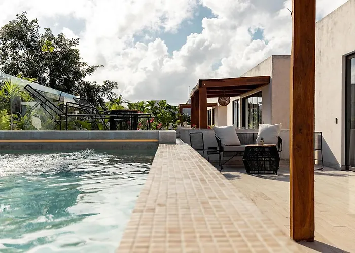 Knapp 4 Kilometer vom Alumbra Mercado Orgánico entfernt gelegen, bietet das 140 m² große Honeymoon Apartment Tulum einen Außenpool an. Das Apartment liegt in 10 Autominuten Entfernung von der Großen Cenote.